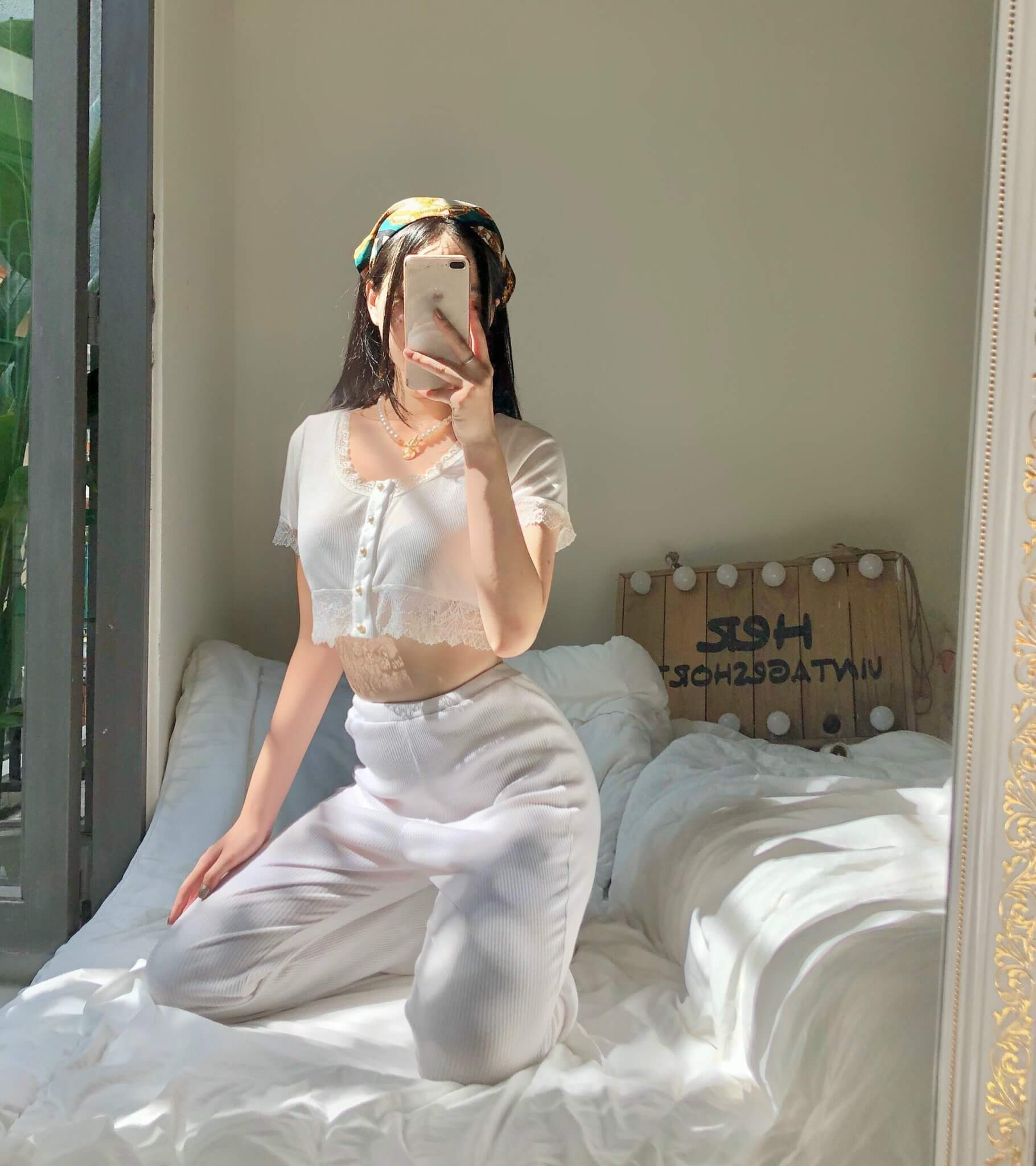 – Áo Croptop phối ren thun co giãn dáng oversize crop